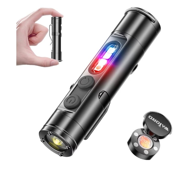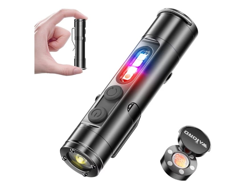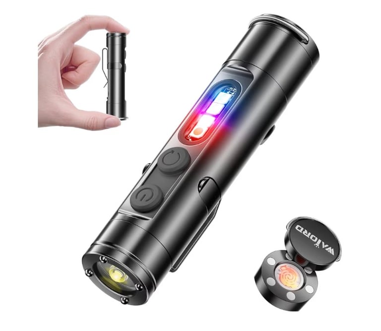 A compact 6-in-1 EDC survival tool designed for daily carry. This rechargeable keychain flashlight features a powerful COB light, side lights, strobe mode, built-in magnet, emergency window breaker, and an electric lighter. Lightweight and durable, it’s perfect for emergencies, outdoor use, travel, or everyday convenience.