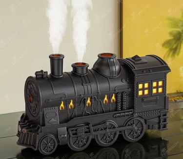 Add a touch of charm and relaxation to your space with this Train-Shaped 300ML Essential Oil Diffuser. It doubles as a cool mist humidifier and a soothing night light, creating the perfect ambiance for bedrooms, offices, or desks. With quiet operation and stylish black design, it’s both functional and decorative — ideal for improving air quality and promoting calm.