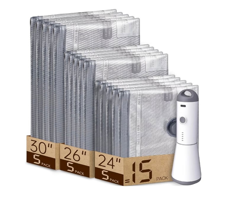 Vacuum Bags for Travel with Rechargeable Air Pump – 15 Combo Set
