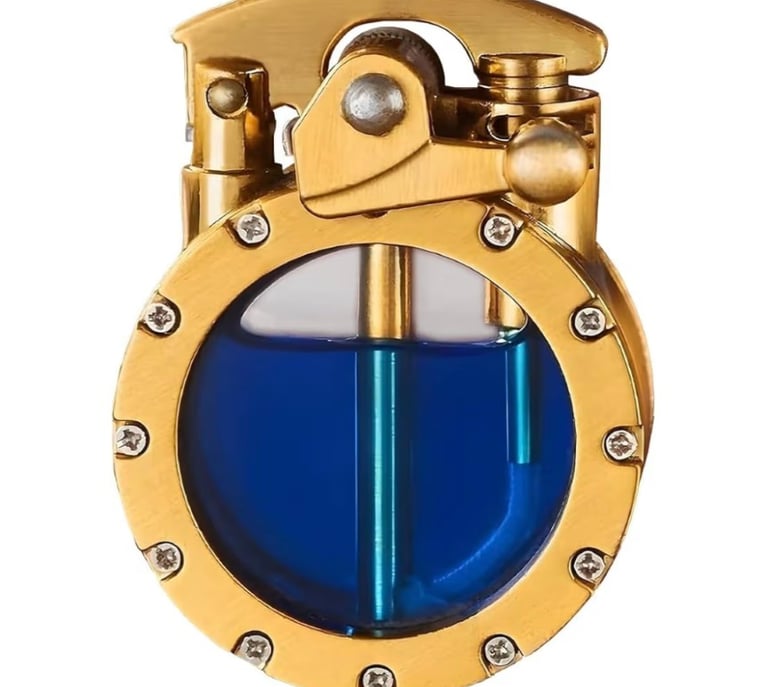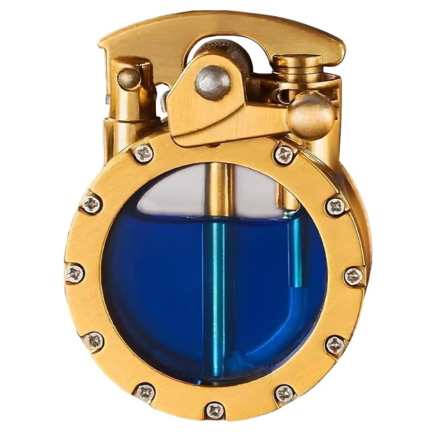 A unique vintage-style trench lighter with a transparent body that shows the inner mechanism, inspired by steampunk design. Built with durable materials and an antique gold finish, it combines creativity, personality, and classic style. Perfect as a cool everyday accessory, a collectible item, or a distinctive gift for men who appreciate retro and mechanical aesthetics.