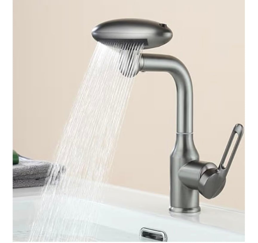 A modern and stylish kitchen upgrade featuring a smooth waterfall water flow. This stainless steel sink mixer comes with a 360° swivel spout and a single-handle control for easy temperature and flow adjustment. Finished in elegant gun gray, it blends contemporary design with practical functionality. Easy to install and built for everyday use, it adds a premium look and comfortable water experience to any kitchen.